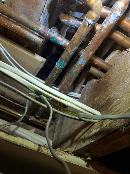 This job certainly tested us today! A customer called up with a water leak directly below a new fully tiled bathroom. Thinking tiles and floorboards needed to come up, we managed to locate the leak making just 1 hole in the ceiling below, only to discover a mountain of pipework. After working out a plan, the pipework was cut out, few tweaks here and there, new pipework soldered in place, then water back on and running hot again with no leaks. Very satisfying job this one and another happy customer!